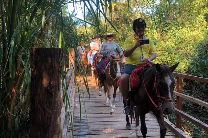 Esses verdadeiros safáris a cavalo ou a pé irão percorrer trilhas pelo Pantanal e parte de Cerrado, passando por campos, áreas alagadas e mata de Bacuris, em conexão plena com a natureza. O tempo é passado junto aos peões e guias, que depois do trajeto irão compartilhar um almoço típico com muitas histórias e memórias em um clima rústico bem pantaneiro.